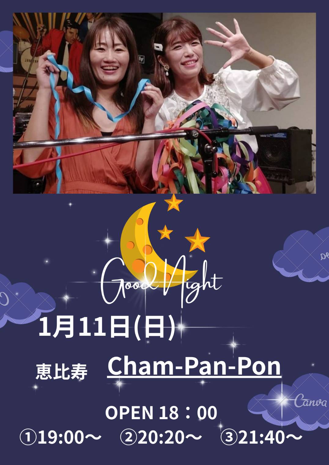 恵比寿 Cham-Pan-Pon 開催期間 2026年1月11日 現在、受付期間ではありません 開催場所 Cham-Pan-Pon Open 18:00 ①19:00~ ②20:20~ ③21:40~ 予約 現在、予約受付期間ではありません。